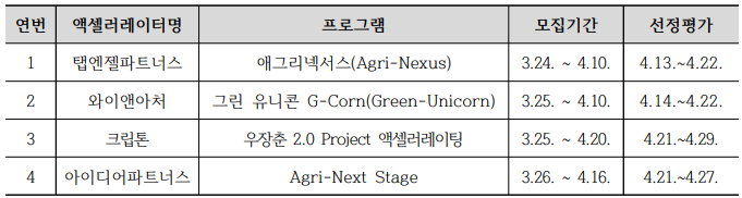 「2026 농식품 기술창업 액셀러레이터 육성지원」액셀러레이팅 프로그램 참여기업 모집 통합공고(2차)