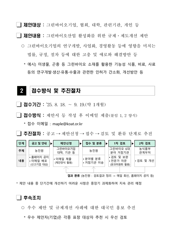 | 2_250813_붙임_공고문_규제개선체계(그린바이오 톡)_vf.hwpx 2_250813_붙임_공고문_규제개선체계(그린바이오 톡)_vf.pdf |