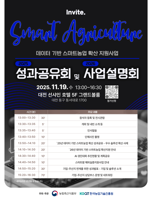 「데이터기반 스마트농업 확산 지원사업」 2025년 성과공유회 및 2026년 사업설명회 개최 안내